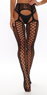 Čierne sieťované pančuchy s podväzkovým pásom a šnurovacím efektom