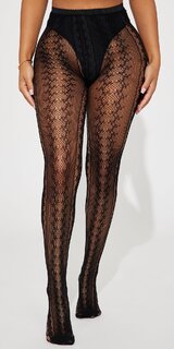 Priesvitné čierne pančuchy s jemným dekoratívnym vzorom vytvárajú uhladený, ženský a moderný vzhľad. Mäkká a pružná syntetická tkanina je príjemná na dotyk a spoľahlivo sa prispôsobí postave počas celého nosenia.