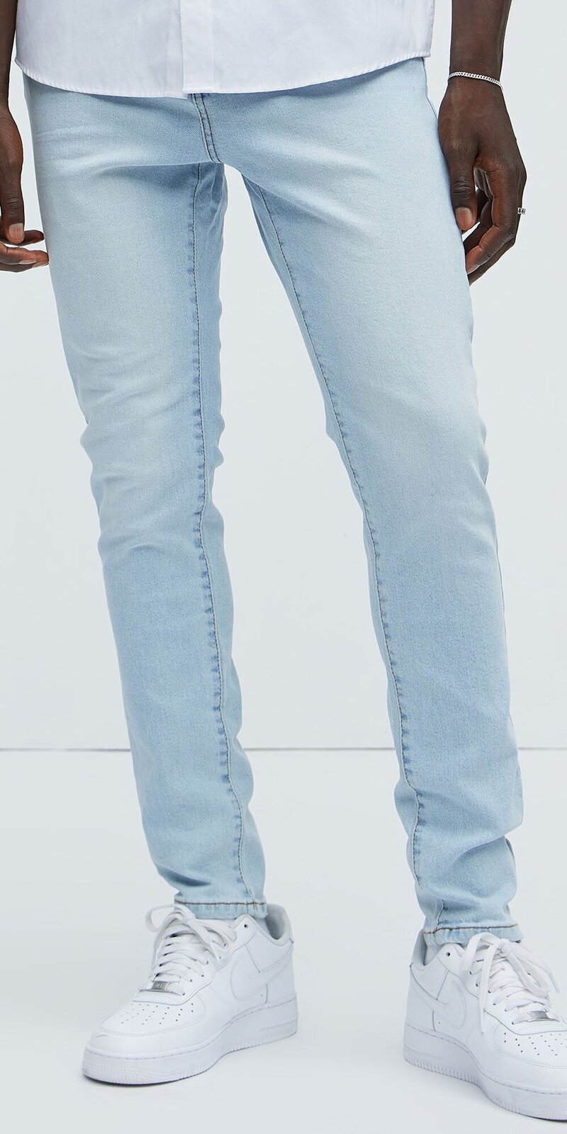Pánske skinny rifle so svetlomodrým praním zaujmú úzkym strihom a moderným mestským vzhľadom, ktorý zvýrazní siluetu a zároveň pôsobí uvoľnene. Denimový materiál s podielom bavlny je pevný, príjemný na dotyk a vďaka jemnej pružnosti poskytuje komfort pri každodennom nosení. Päťvreckové prevedenie a decentne vyšúchaný povrch dodávajú modelu nadčasový, štýlový charakter.