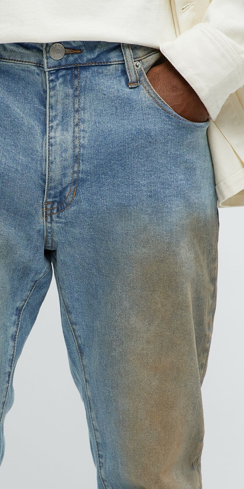 Model My Dirty Baseball v odtieni svetlomodrej denimovej farby prináša ikonický stacked skinny strih, ktorý sa prirodzene nariasuje pri členkoch. Vďaka špeciálnemu opraniu a tónovaniu pôsobí autenticky a každé vyhotovenie je jedinečné.