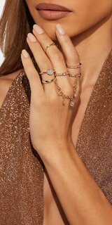 Sada šiestich prsteňov s kamienkami a retiazkovým detailom v zlatej farbe Zväčšiť