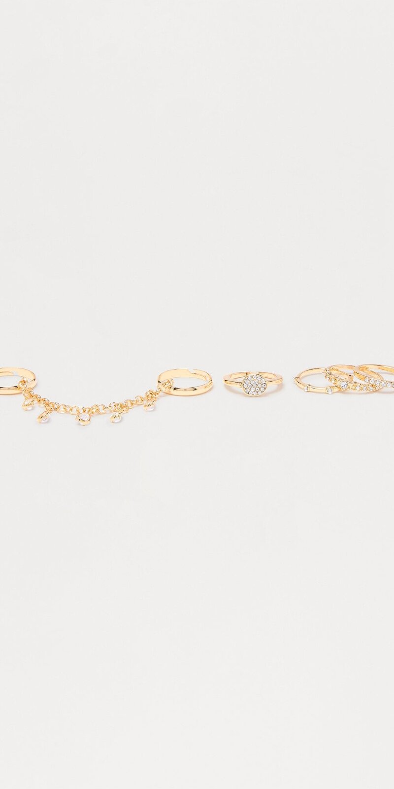 Sada šiestich prsteňov s kamienkami a retiazkovým detailom v zlatej farbe
