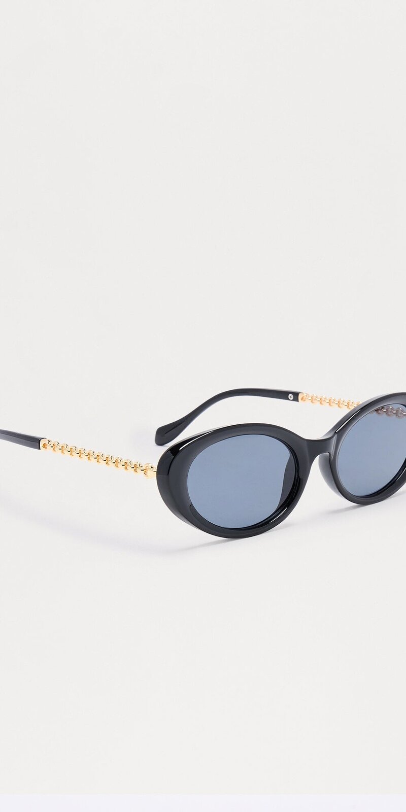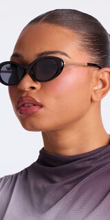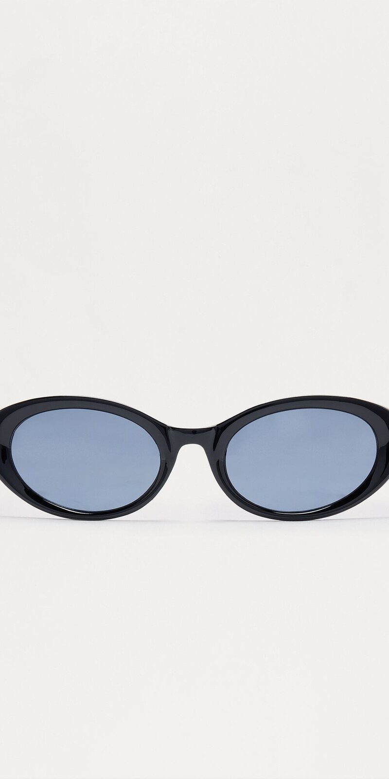 Tieto okrúhle slnečné okuliare v čiernej farbe sú štýlovým doplnkom, ktorý dodá outfitu moderný a uvoľnený charakter. Nadčasový tvar sa hodí k rôznym typom tváre a pôsobí elegantne aj ležérne zároveň.