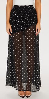 Čierno-biela maxi sukňa z jemného šifónu s bodkami