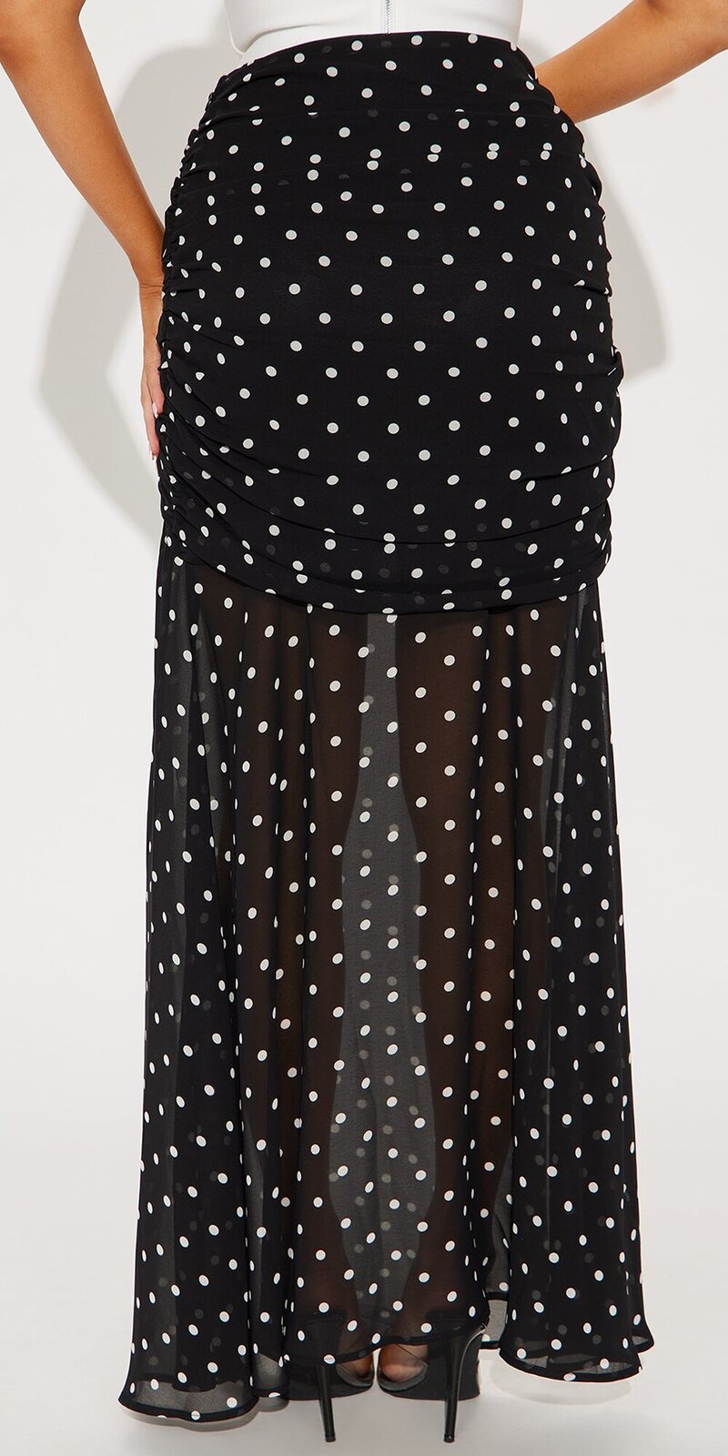 Čierno-biela maxi sukňa z jemného šifónu s bodkami Zväčšiť