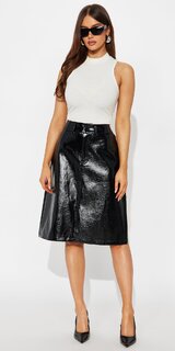 Midi sukňa z lesklého patentovaného materiálu v čiernej farbe