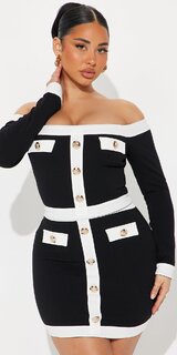 Táto čierno-biela súprava s odhalenými ramenami pôsobí elegantne a žensky, pričom si zachováva moderný a odvážny štýl. Priliehavý strih dokonale zvýrazní ženskú siluetu a elastická tkanina zabezpečí pohodlie aj pri celodennom nosení.