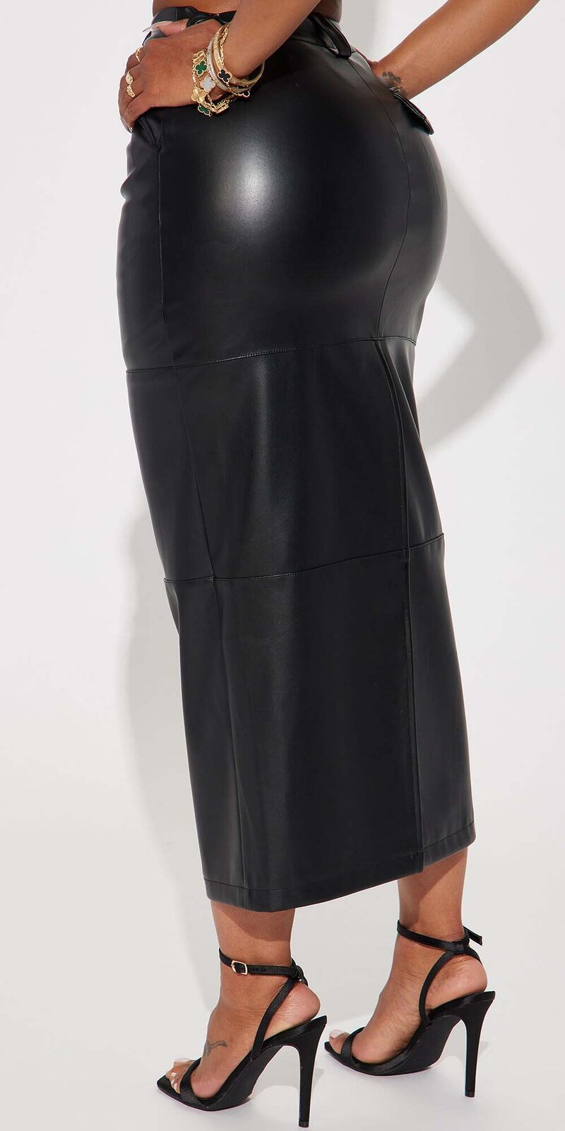 Táto štýlová midi sukňa z umelej kože je dokonalým základom pre moderný a sebavedomý outfit. Vďaka vysokému pásu a pútkam na opasok krásne tvaruje siluetu a umožňuje kombináciu s doplnkami podľa vlastného vkusu. Sukňa má zapínanie na zips a háčik/gombík pre pevné uchytenie a zadný rozparok pre voľnosť pohybu. Materiál má miernu pružnosť, čo zaručuje pohodlie pri nosení. Ideálna na jesenné a zimné outfity s vysokými čižmami alebo elegantnými lodičkami.